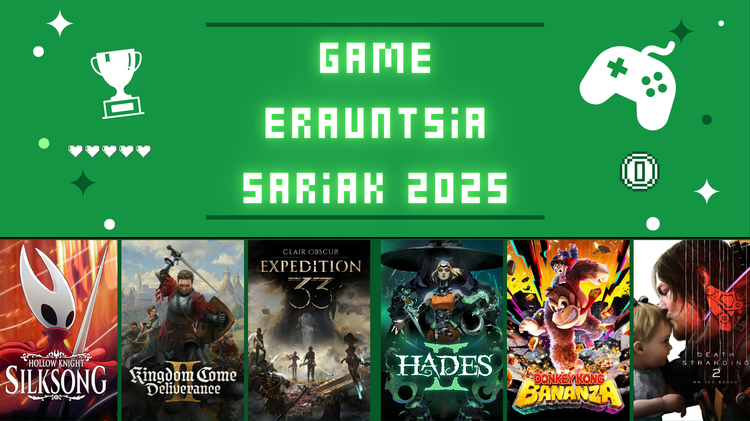 Aurtengoa lehia gogorra izango da. Alde batetik, aspalditik espero genituen bideojoko handi zein txikiak estreinatu dira, azkenik, 2025ean: Hollow Knight: Silksong, Metroid Prime 4: Beyond, Death Stranding 2: On the Beach, Hades II, Mario Kart World…